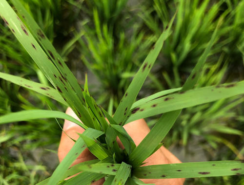 胡麻葉斑病又稱胡麻葉枯病,屬真菌病害,全國各稻區(qū)均有發(fā)生。多發(fā)生在因缺水肥引起水稻生長不良的稻田,秧苗受害引致苗枯,葉片受害造成葉枯,穗部受害,導(dǎo)致千粒重下降及空癟粒增多,一般造成減產(chǎn)10%左右,重病田可減產(chǎn)30%以上,并降低稻米品質(zhì)。