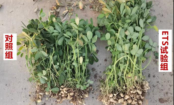 萬冢鎮(zhèn)郭寺村五百畝實驗基地采用ETS改良花生種植土壤,改良地塊的花生根系毛細根和根瘤菌數(shù)量顯著增多,促進了植株對營養(yǎng)元素的吸收和轉(zhuǎn)化;花生座果率提升約25%、株高增加約30%,預計畝產(chǎn)提升約25%,實現(xiàn)了花生的減肥增產(chǎn)。