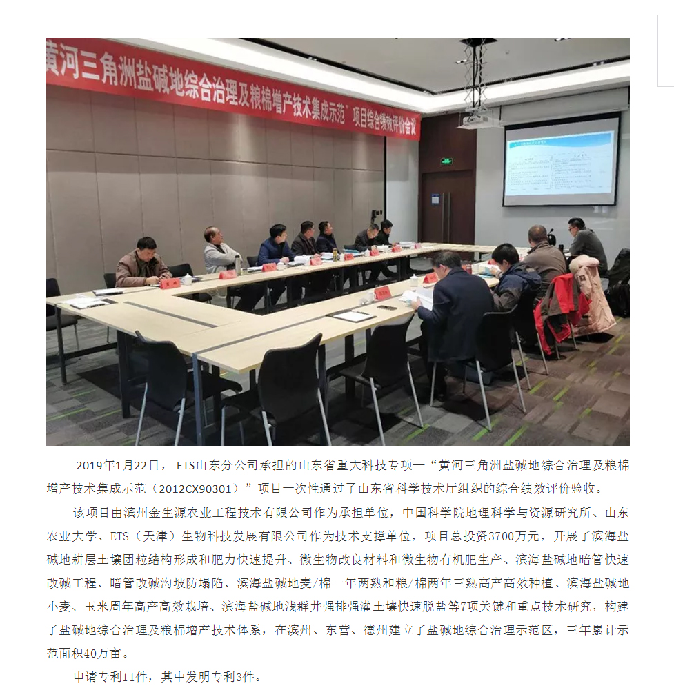 ETS山東分公司承擔(dān)的山東省重大科技專項--“黃河三角洲鹽堿地綜合治理及糧棉增產(chǎn)技術(shù)集成示范”項目順利通過驗收
