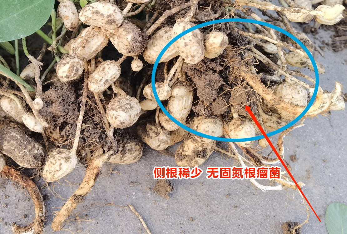 △ 常規(guī)農(nóng)戶種植側(cè)根稀少,無固氮根瘤菌,籽粒下且多空粒