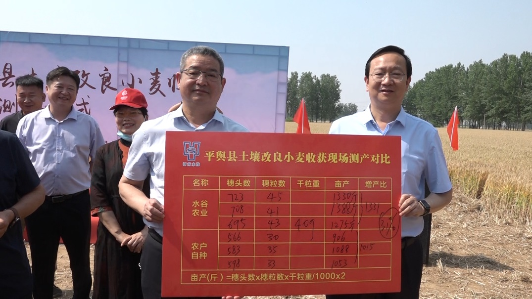 5月24日,河南水谷農(nóng)業(yè)發(fā)展有限公司聯(lián)合平輿縣人民政府在平輿縣老王崗鄉(xiāng)白龍廟村舉行2022年平輿縣土壤改良小麥實(shí)驗(yàn)田測產(chǎn)儀式。